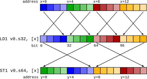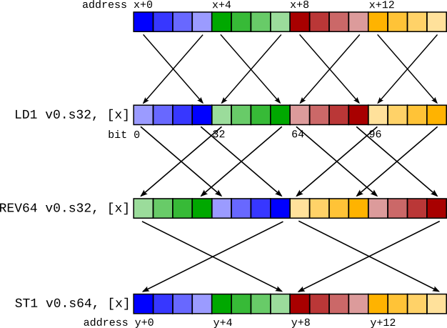 Fig. 2 Big endian vector load using LD1. Note that the lanes retain the correct ordering.¶